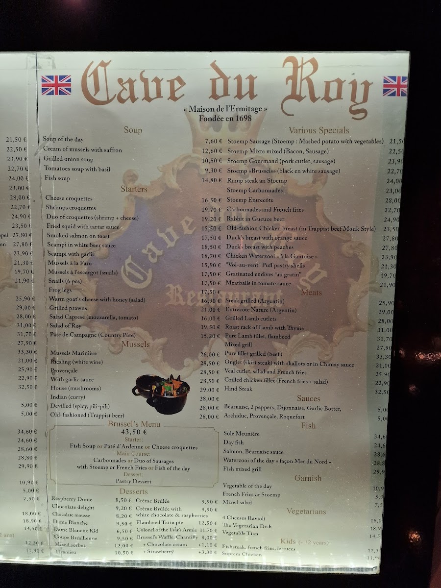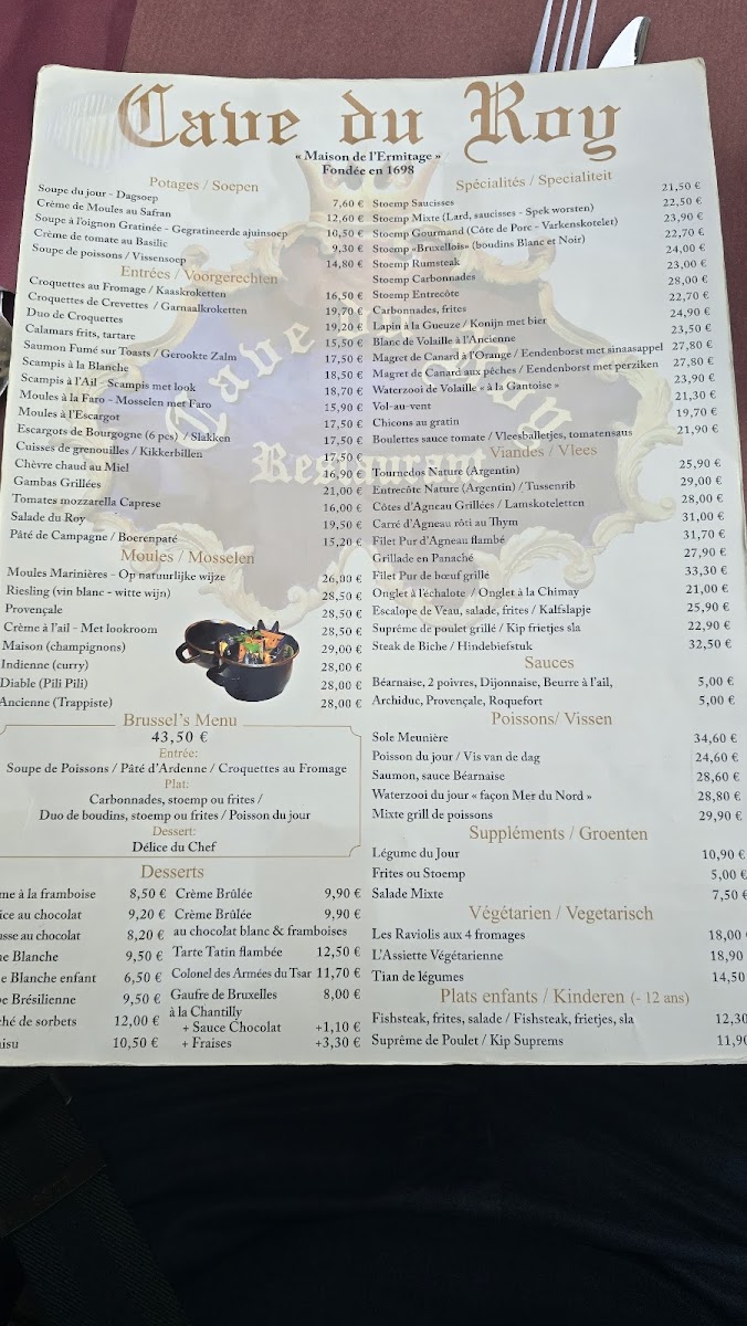 With a menu catering to diverse palates, even the pickiest eaters will find joy here. The enchanting atmosphere, paired with breathtaking views of the Grand Place, creates a warm and inviting experience. Attentive staff enhance your dining journey, ensuring every visit is memorable. Whether savoring a delicious salmon dish or indulging in comforting stew, your taste buds are in for a treat. Cave du Roy - De Kelder isn’t just a meal; it’s a culinary celebration waiting to be explored!